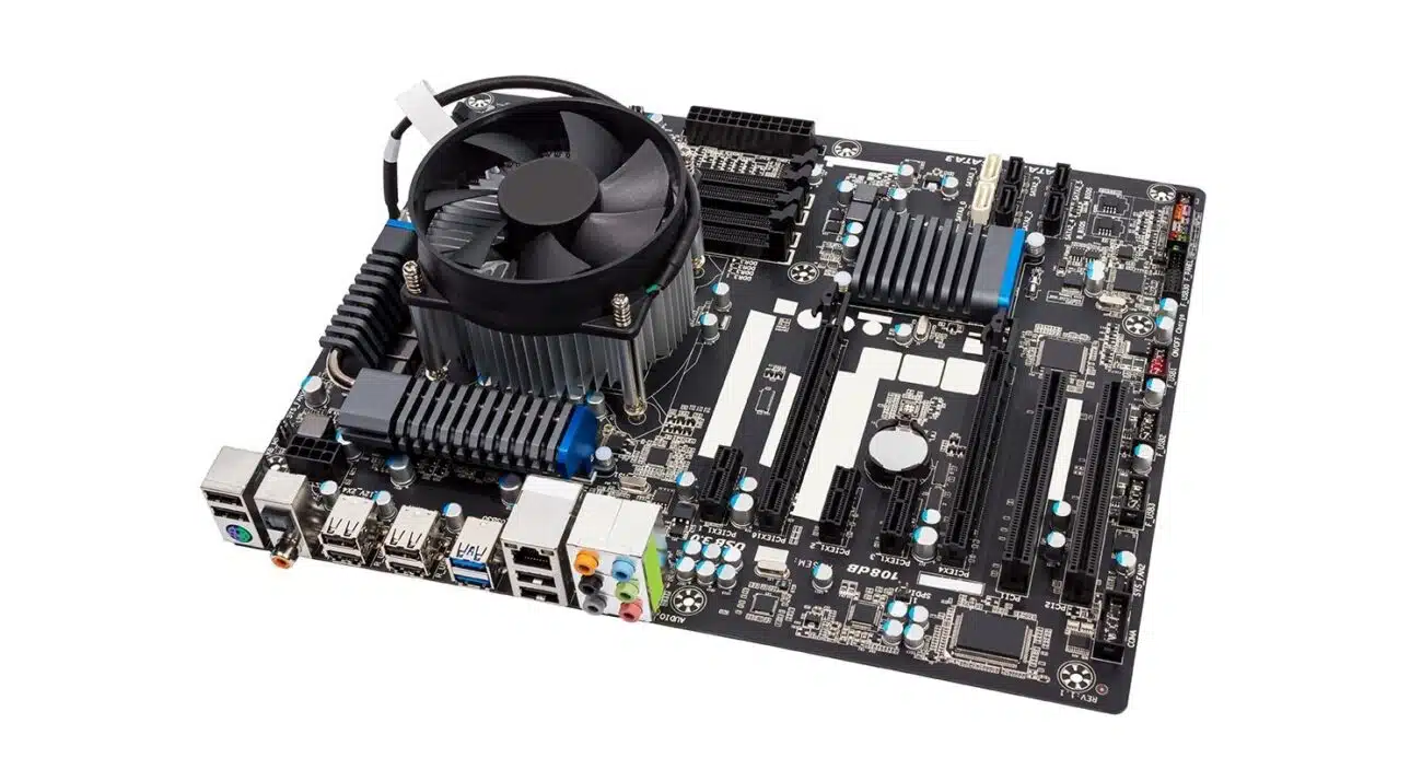 The motherboard is the circuit board that houses the processor, memory modules, hard drive or SSD, and other parts. It joins the many components of the computer.
