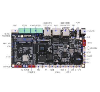 | Expansion Interfaces | USB: 8 channels (1 USB 3.0 OTG, 7 USB 2.0) HOST Serial Ports: 1 TTL, 2 RS232 (configurable to TTL), 2 RS485 (configurable to RS232), 1 MIPI camera (optional) I2C: 1 port, connects to I2C interface TP or peripherals |